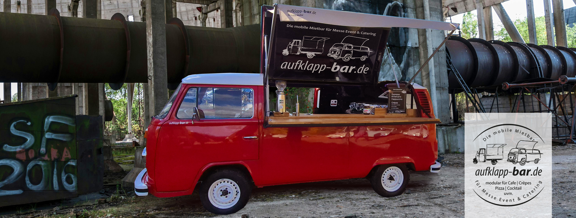 Erleben Sie das ultimative Catering-Erlebnis auf Ihrem nächsten Event mit unserern mobilen Mietbarw"! Unsere mobile Bar in Form einer Piaggio Ape oder VW T2 Oldtimer verwandelt sich in das Herzstück Ihrer Veranstaltung.